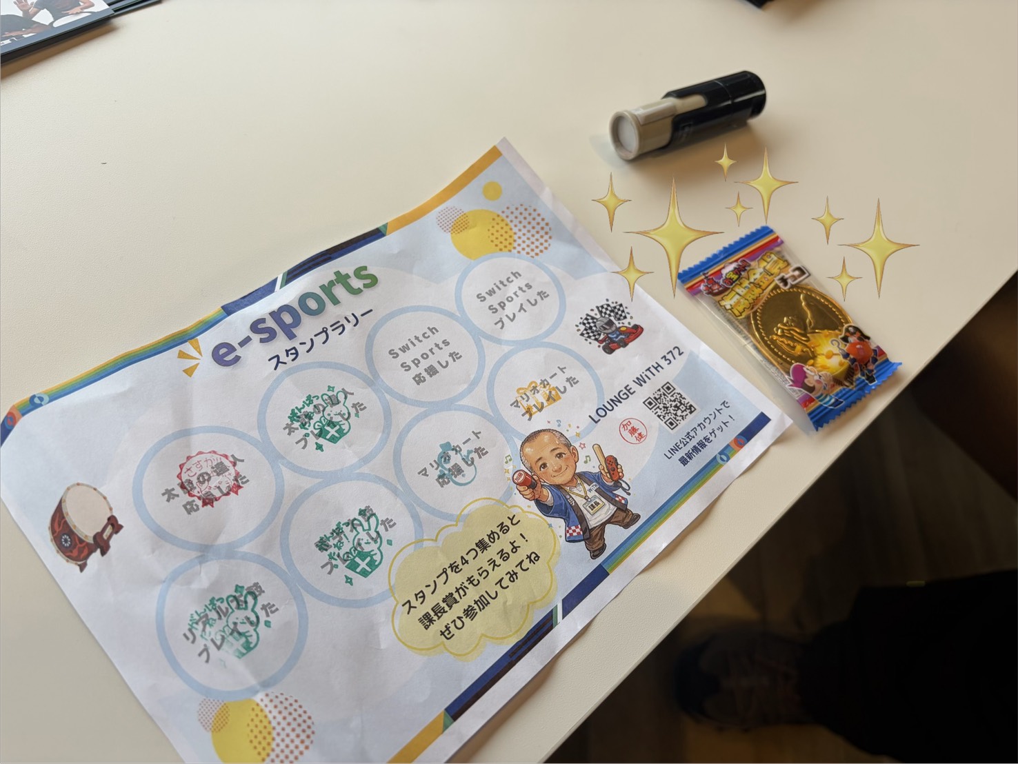 e-sportsの参加、応援、電子ドラムやリアル太鼓をたたいて、スタンプをGET!景品がもらえます♪